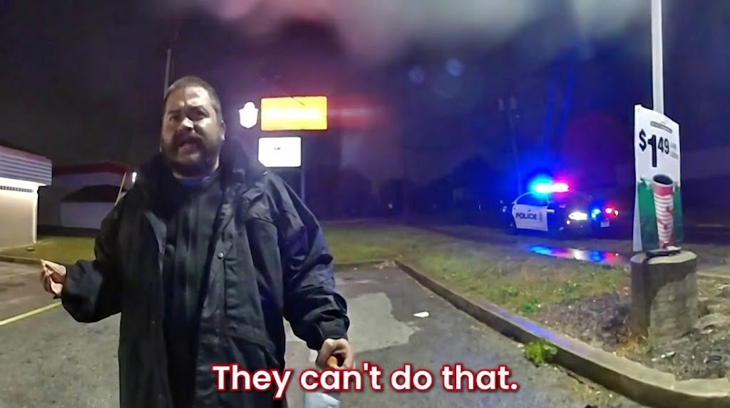 “Good for you, I don’t give a s—,” one of the arresting officers can be heard saying back at one point.